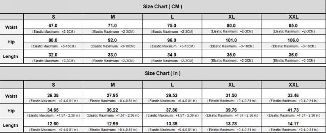 | Size | Bust | Waist | Hips |