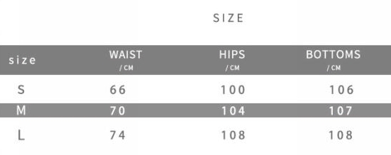 | Size | Bust | Waist | Hips |