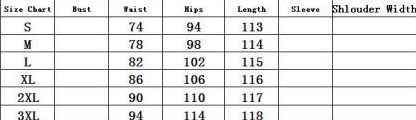 | Size | Bust | Waist | Hips |