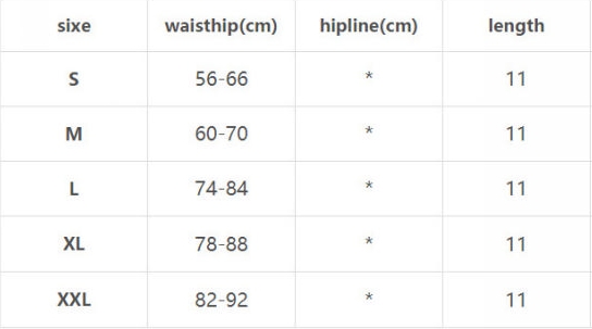| Size | Bust | Waist | Hips |
