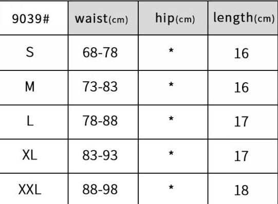 | Size | Bust | Waist | Hips |
