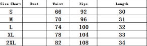 | Size | Bust | Waist | Hips |