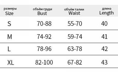 | Size | Bust | Waist | Hips |