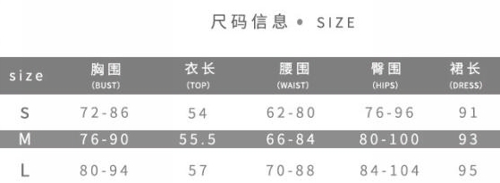 | Size | Bust | Waist | Hips |