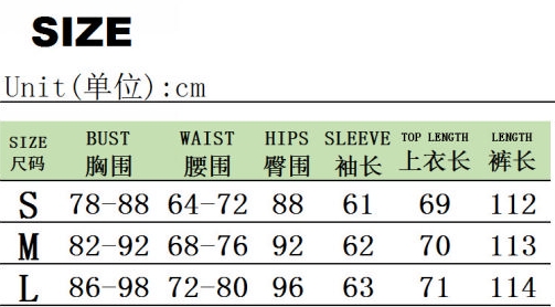| Size | Bust | Waist | Hips |