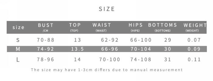 | Size | Bust | Waist | Hips |