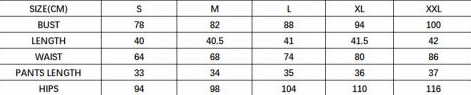 | Size | Bust | Waist | Hips |